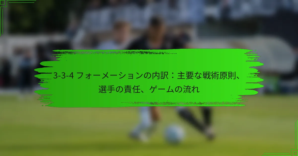 3-3-4フォーメーションは、守備の堅実さと攻撃力のバランスを強調しており、各選手に明確な役割があります。ディフェンダー、ミッドフィールダー、フォワードの責任を理解することは、チームの形を維持し、戦術的な戦略を効果的に実行するために重要です。