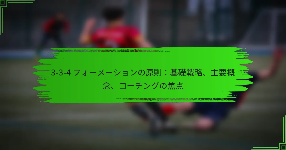 3-3-4フォーメーションは、サッカーにおける戦術的アプローチで、攻撃力を優先しつつ、堅固な守備基盤を確保します。3人のディフェンダー、3人のミッドフィールダー、4人のフォワードで構成されるこのセットアップは、ダイナミックな攻撃戦略と効果的なスペーシングを促進します。コーチは、選手のポジショニング、コミュニケーション、戦術的意識を強調し、フォーメーションの潜在能力を最大限に引き出すべきです。