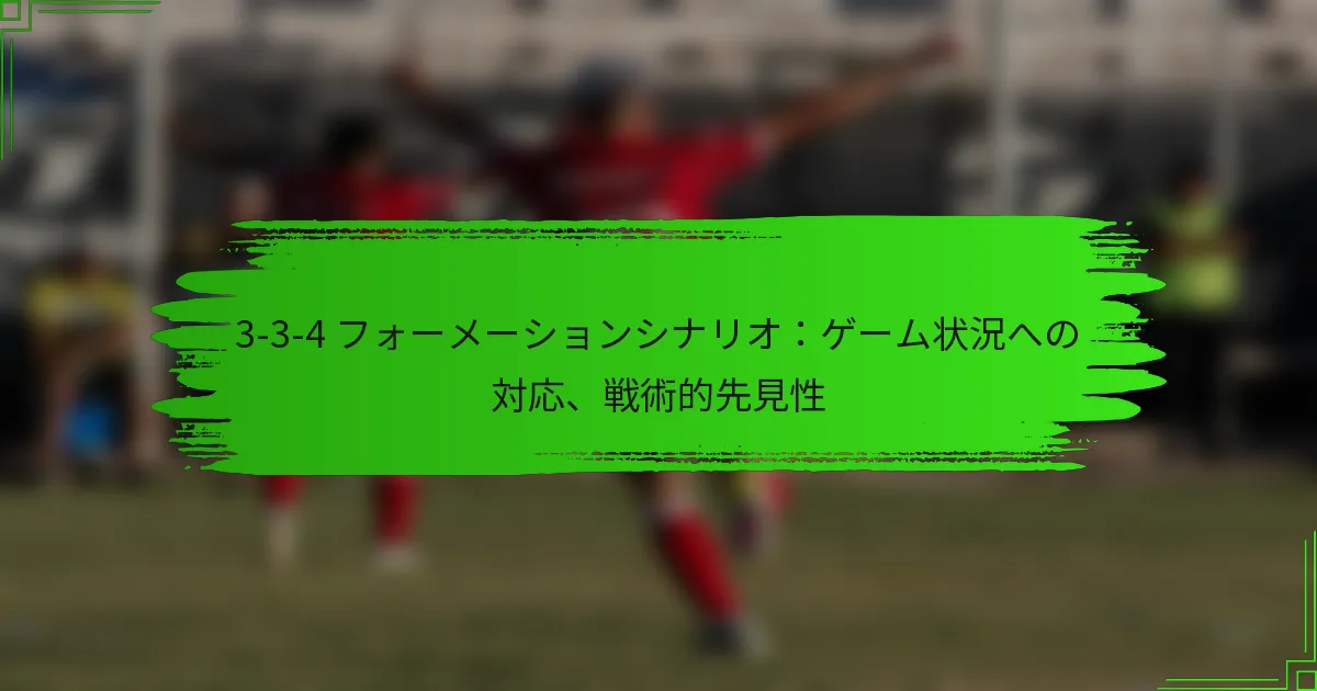 サッカーにおける3-3-4フォーメーションは、3人のディフェンダー、3人のミッドフィルダー、4人のフォワードを組み合わせており、攻撃的なアグレッションと守備的な安定性のバランスを取っています。この柔軟なセットアップは、チームが多様なゲームシナリオに効果的に対応できるようにし、ボールポゼッションを支配し、得点機会を創出する能力を高めます。戦術的な先見の明を持って、チームは相手の動きを予測し、戦略を調整することで、フィールド上での効果を最大化できます。
