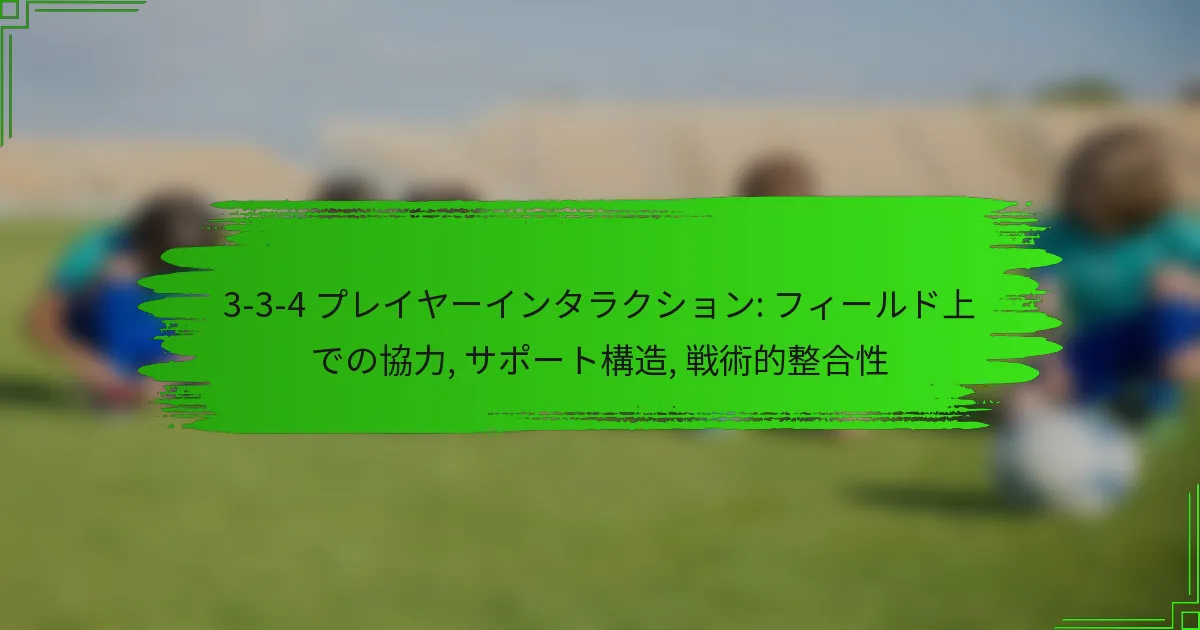 サッカーにおける3-3-4フォーメーションは、攻撃力と守備の安定性をバランスよく保つために設計されており、3人のディフェンダー、3人のミッドフィールダー、4人のフォワードで構成されています。このセットアップでの成功したコラボレーションは、明確なコミュニケーションと定義された役割に依存しており、選手たちが調和して働き、戦術的な戦略を効果的に実行できるようにします。サポート構造は重要であり、ミッドフィールダーとディフェンダーがシームレスに連携し、機会を創出しながら守備の堅実さを確保できるようにします。