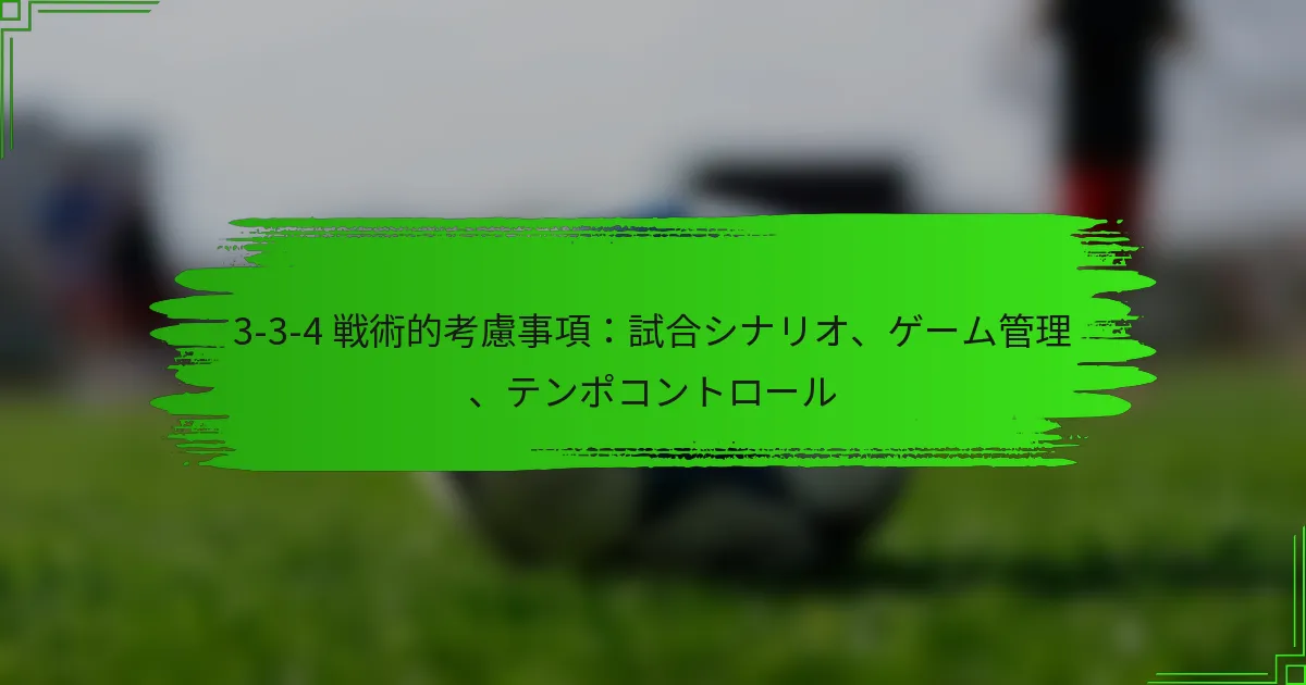 3-3-4フォーメーションは、攻撃力を優先しつつ防御の安定性を確保する多用途な戦術アプローチです。試合のテンポを管理し、さまざまな試合シナリオに適応する方法を理解することは、その効果を最大限に引き出すために重要であり、特に強力な相手や変化する試合のダイナミクスに対応する際に必要です。