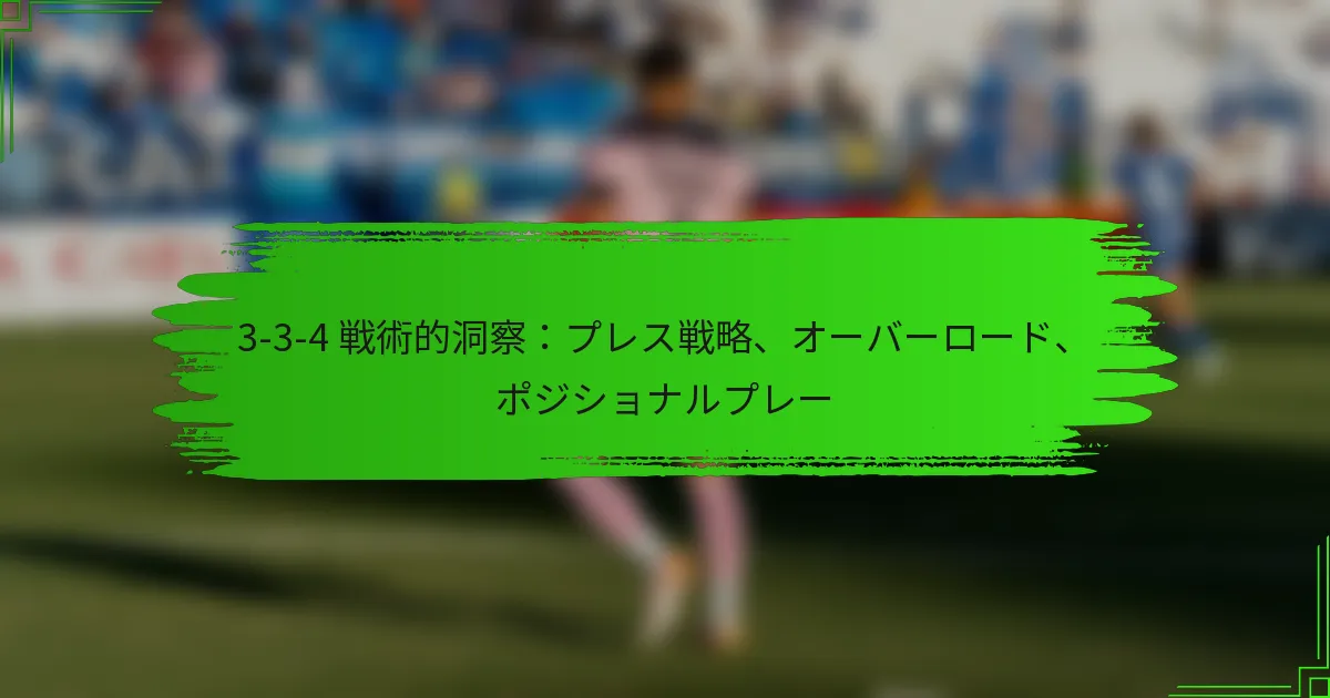3-3-4フォーメーションは、プレッシング戦略を強調し、迅速にボールを奪い、相手を妨害する動的な戦術セットアップです。効果的なオーバーロードを作成することで、チームは重要なエリアで守備者を上回り、攻撃の機会を増やすことができます。さらに、このフォーメーションのポジショナルプレーの原則は、空間の組織化と選手のポジショニングに焦点を当てており、試合中の守備の安定性と流動的なトランジションを確保します。